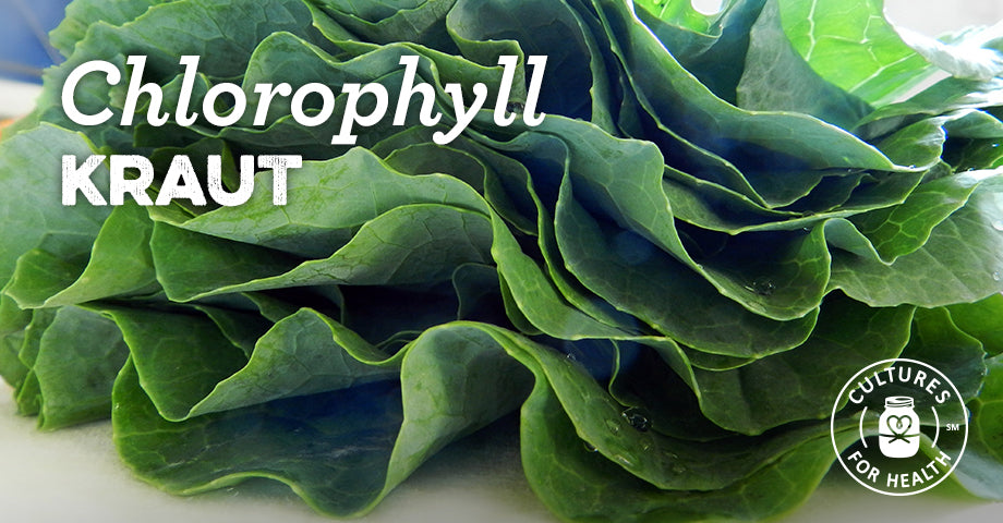 Chlorophyll is the lifeblood of plants, and is known as an important part of a healthy human diet. Foods rich in chlorophyll include any dark green leafy vegetable or herb. By combining cabbage with collard greens and fresh parsley, this kraut packs an extra punch of chlorophyll.