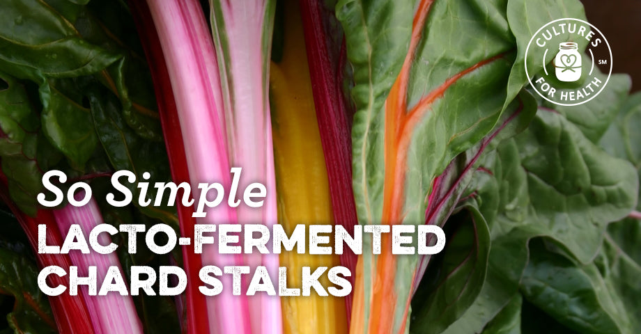 Dill is such a simple yet powerful addition to any veggie ferment, and so it is in this breeze of a recipe. Save the stalks from Swiss chard and make this delicious fermented snack. Beet green or spinach stalks also work well in this recipe.