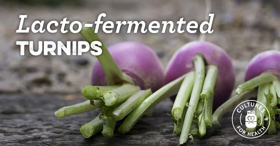 Turnips are an interesting, nutritious alternative to things like potatoes. They are a member of the radish family and can have a bit of a bite to them. When fermented, turnips take on a great tang which mellows out that radish-like bite and makes them a crunchy and delicious pickle for snacking.