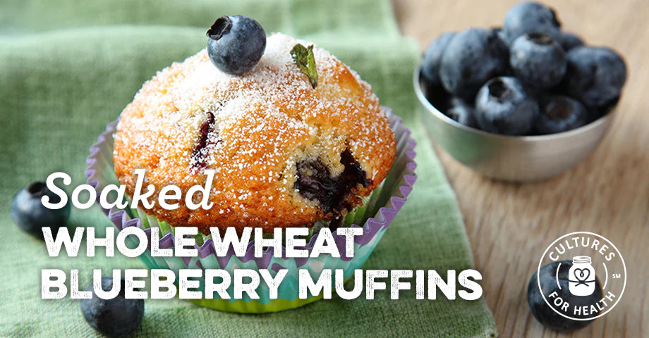 - Soak whole wheat flour in the cultured dairy in a large bowl, covered, for 12 hours or overnight. (Soaking for 24 hours yields fluffier muffins).