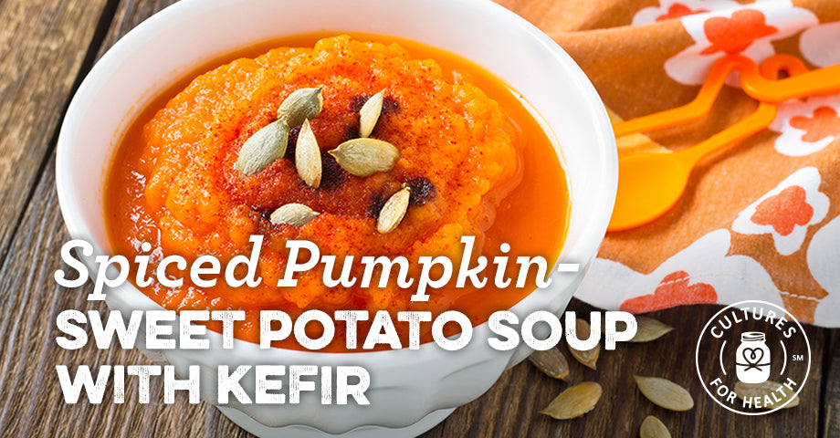 Ever wanted to combine the nourishment of soup with the probiotics of cultured dairy? It can be done. The problem with the usual recipes is the cooking ofyogurt,kefir, or sour cream into the soup. This makes for a creamy soup, but it also kills all of the enzymes and probiotics that make these cultured foods so good. Instead, why not add freshly cultured milkkefir to a thick soup which has cooled just enough to keep the cultures alive? You don’t need a thermometer, though. A good rule of “thumb” is to place a clean finger into the center of the soup and if you can hold it in there without it feeling as though it might burn you, then your soup should keep your milkkefir alive and kicking.