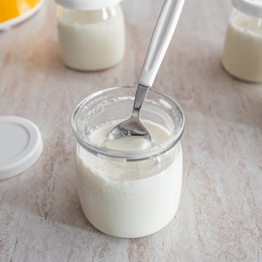 You'll need a yogurt maker or a spot that can hold a temperature of 110°F for up to 12 hours, a pan, thermometer and containers to culture in if your yogurt maker doesn't come with jars or an insert. A small container to keep your starter for the next batch is handy.
