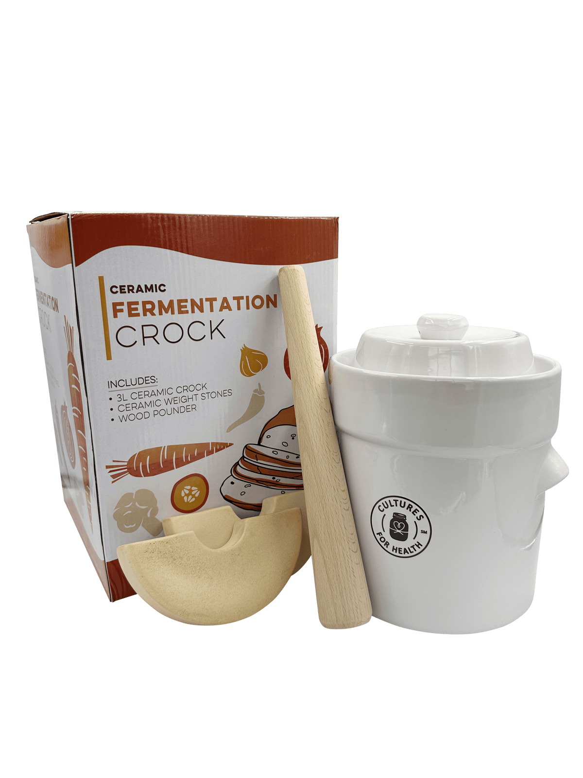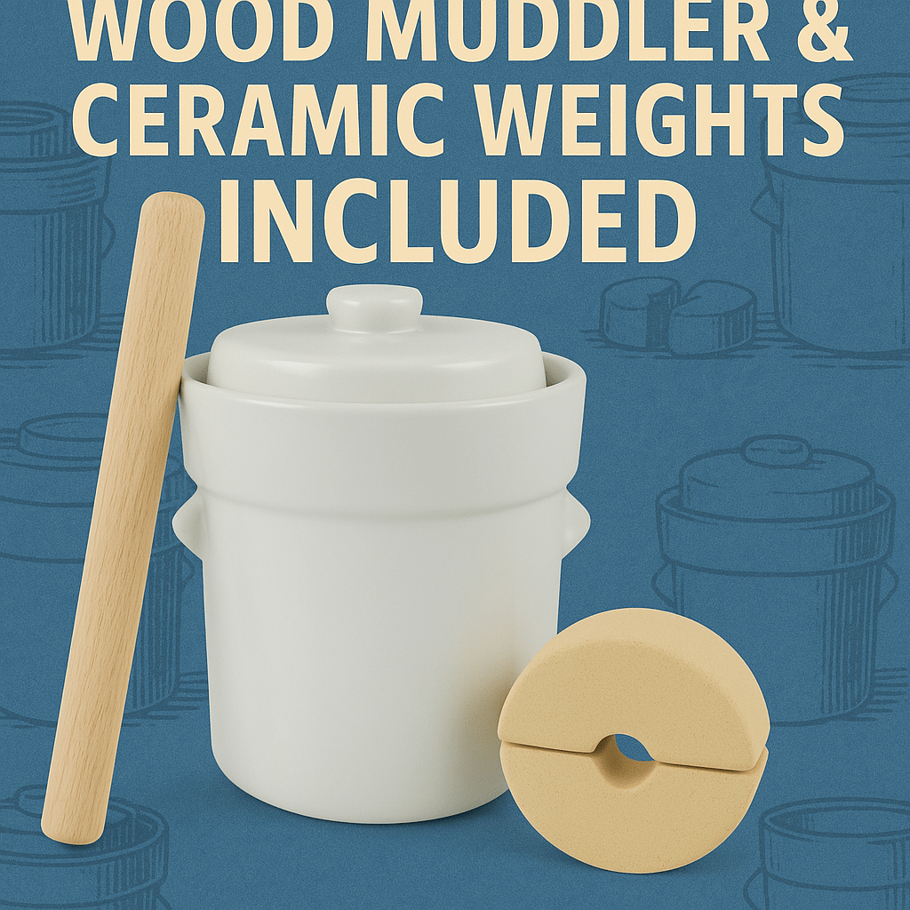 Each fermentation crock also comes with a handy wood muddler, making it easier than ever to pack vegetables tightly and release their natural juices for optimal fermentation.