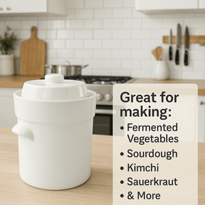 Discover the joy and simplicity of fermenting your favorite vegetables with the Cultures for Health Fermentation Crock. Perfect for beginners and seasoned fermenters alike, this beautiful and durable stoneware crock allows you to effortlessly make probiotic-rich sauerkraut, kimchi, pickles, and more right in your kitchen.